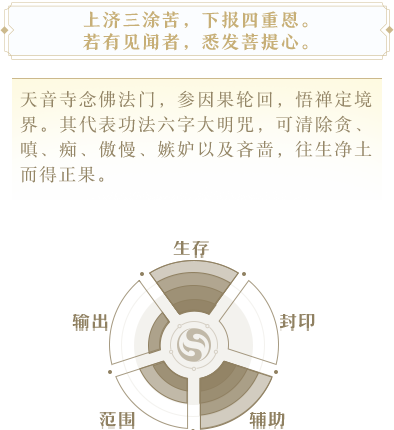 治疗两名友方,每回合初持续恢复气血和内伤。若已有生灵祝福,则本次治疗量提高。